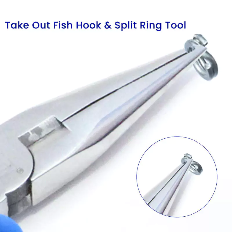 Split ring pliers open split rings so you can attach or remove hooks, swivels, and links with less effort. The 5 inch split ring pliers size fits the hand well, drops into a pocket or small tackle box, and gives enough leverage for light to medium fishing tasks. Small-bevel jaws guide the ring onto the tip and help you work with control.