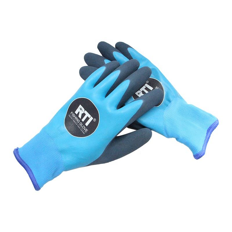 Factory price PVC acrylic fibers blue waterproof fishing glove