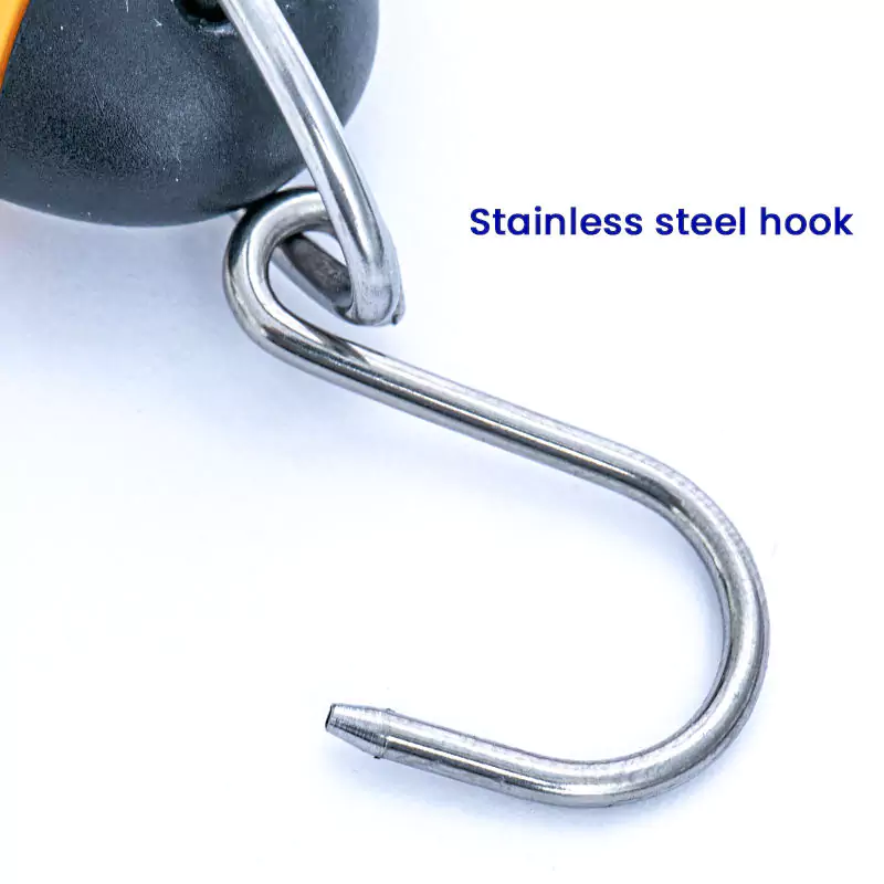 - Stainless Steel Hook Durability: Equipped with a stainless steel hook, the scale maintains strength and resists bending under load. It also offers better longevity compared to basic iron hooks.