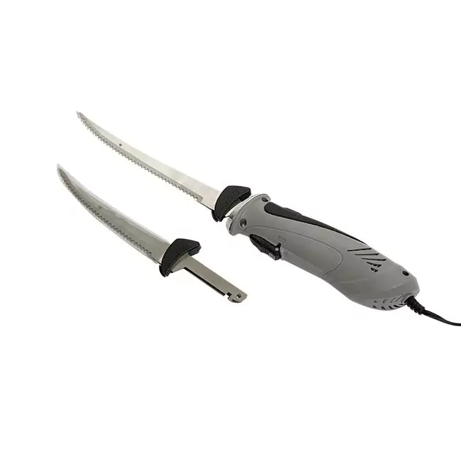 RTI’s 12V Electric Fillet Knife combines the power of a high-performance 12V motor with the durability of 420 stainless steel blades. Designed with a comfortable handle, the knife provides excellent grip and control, allowing you to fillet fish effortlessly. The built-in safety button ensures a secure operation, while the option to plug the knife into a wall socket or connect it to a car/boat lighter provides versatility for outdoor use. Available in two sizes (6″ and 7.5″), this electric fillet knife is designed for both beginners and professionals alike.